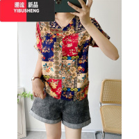 YIBUSHENG薄款休闲棉绸上衣女季宽松显瘦V领t恤人造棉短袖时尚百搭衬衫