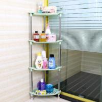 敬平浴室置物架不锈钢伸缩杆顶天立地卫生间墙转角三角收纳层架免打孔 四个托盘+有毛巾杆