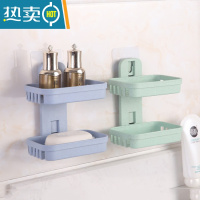 敬平免打孔肥创意浴室置物架双层肥皂架卫生间沥水壁挂香皂架家用 北欧蓝(2套装)皂盒