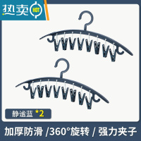 敬平家用挂衣晒衣服晾衣架器 挂袜子夹衣服多功能衣服撑子衣架J 静谧蓝*2 1个衣夹