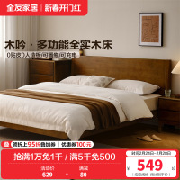 全友家居现代简约真皮床卧室软包大床充电置物夜灯多功能皮床