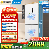 [自营]美的冰箱M60系列457超薄全嵌十字双开四开门家用电冰箱MR-457WUSPZE白底部散热一级风冷无霜 以旧换新