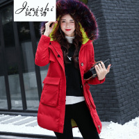 纪尼诗女装2018羽绒服新款冬季修身中长韩版服女彩毛领外套