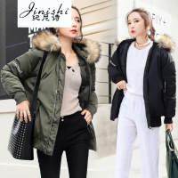 纪尼诗女装2018韩版新款羽绒服女高休闲大毛领收腰加厚外套