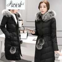 纪尼诗女装2018白鸭绒冬季新款韩版修身羽绒服女中长款大毛领潮