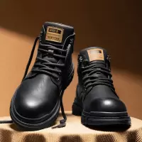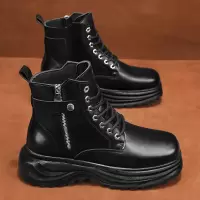 新款男鞋中高帮复古男靴增高厚底机车美式工装鞋休闲百搭马丁靴