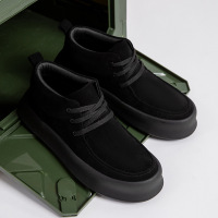 秋冬反绒牛皮厚底高帮鞋男士手工上线加绒马丁靴系带工装鞋休闲鞋