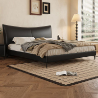 意式极简真皮悬浮床现代极简主卧泡芙软包榻榻米床黑色豆
