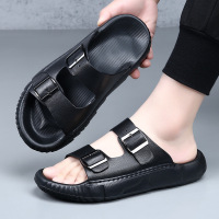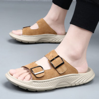 头层牛皮拖鞋男士夏季欧美外穿沙滩鞋男款室内防滑高端凉拖男潮