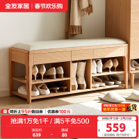 全友家居 软包换鞋凳原木风实木腿入户门口鞋柜收纳凳子储物凳