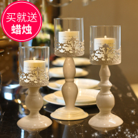 美式浪漫复古白色玻璃铁艺蜡烛台烛光晚餐餐桌情人欧式装饰品摆件