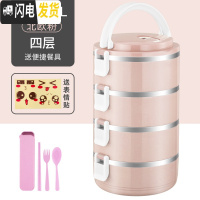 三维工匠2019不锈钢保温饭盒上班族便当盒学生保温桶便携餐盒多层分格带盖 4层北欧粉[送餐具+表情贴]