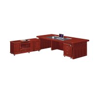 尔迈 办公桌老板桌经理桌油漆贴实木皮桌大班台职员写字台 带副柜带小柜 2.8米