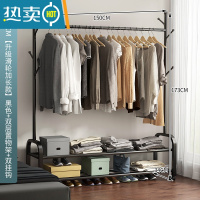 敬平衣架家用落地挂衣架简约现代卧室置衣架室内小型晾衣架简易衣帽架 150cm[升级滑轮加长款]黑色+双层置物架+双挂钩