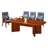 迈亚高端油漆中式会议桌泰柚木色长条皮会议台桌办公会议桌