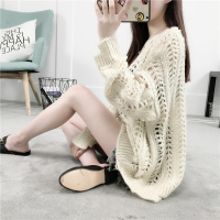 春夏新款镂空针织衫女长袖宽松韩版大码薄毛衣外套空调罩衫套头潮