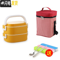 三维工匠304不锈钢超长保温桶多层保温饭盒带学生上班族微波炉便当盒便携 黄色2层(送保温袋和餐具)