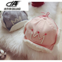 锦铭七玥2018韩版新款小狗翻沿鸭舌帽 宝宝绣花彩棉软檐帽 独角春婴儿帽子
