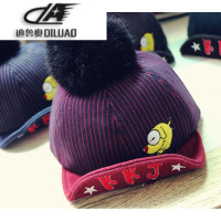韩版秋冬季儿童兔毛球球软檐帽男女宝宝条纹毛呢棒球帽翻檐鸭舌帽七天无理由退货 品质保证