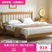 全友家居北欧原木风实木床卧室樱桃木双人床2024新款温莎床