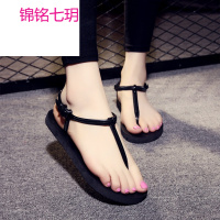 锦铭七玥夏季罗马色沙滩凉拖鞋人字拖女防滑平跟夹脚拖鞋凉拖女夏黑