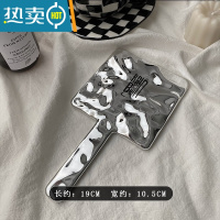 敬平ins风不锈钢双面小号镜子女手持便携式折叠宿舍随身翻盖式化妆镜 手持化妆镜 银色 (长约19cm)便携式用镜