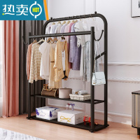 敬平顶天立地晾衣架家用落地卧室内置物架伸缩杆阳台隔断晒挂衣架器 磨砂黑3折叠翅膀⭐加粗加厚