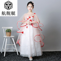 儿童婚纱礼服公主女童蓬蓬白纱裙拖尾花童钢琴演出服走秀晚礼服