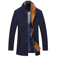 欧码男装秋冬可脱卸围巾夹棉毛呢大衣男士中长款羊毛风衣外套