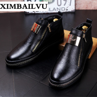 品牌秋冬季男士短靴保暖加毛高帮男鞋时尚潮男马丁靴内增高牛仔靴子套脚侧拉链潮流板鞋男5735