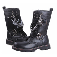 秋冬新款摇滚靴十字袖朋克靴演出时尚大头韩版男靴中筒男士牛仔靴