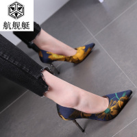 时尚浅口拼色高跟鞋女2017秋季新款单鞋尖头细跟百搭显瘦气质女鞋