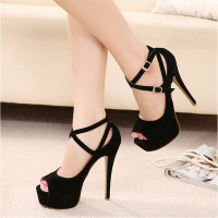 2017新款韩版新款凉鞋女夏2017超高跟鞋细跟单鞋防水台绒面露趾性感鱼嘴鞋