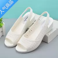 SUNTEK女鱼嘴凉鞋夏季坡跟塑料防水白色护士鞋防滑软底沙滩鞋休闲妈妈鞋