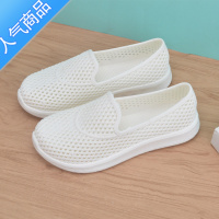 SUNTEK白色镂空防滑护士鞋夏季透气软底广场舞鞋塑料舒适百搭平底凉鞋女
