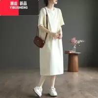 YIBUSHENG复古减龄中长款连衣裙宽松显瘦短袖休闲运动季t恤裙女