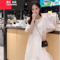 YIBUSHENG设计感小众t恤连衣裙女季大码显瘦遮肚子中长款网纱a字裙子
