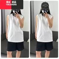 YIBUSHENG白色美式运动坎袖无袖背心女外穿上衣t恤大码长款宽松坎肩