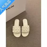 SUNTEK平底编织拖鞋女鞋子2023年新款夏季外穿仙女风凉鞋白色沙滩小凉拖