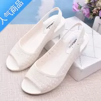 SUNTEK夏天女塑料凉鞋白色坡跟鱼嘴后拌带软底防滑女凉鞋镂空洞洞妈妈鞋