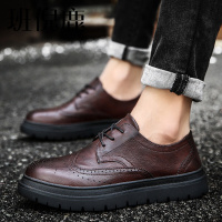 路蒙卡帝墨季秋冬季布洛克雕花男士商务休闲鞋潮流百搭厚底内增高鞋英伦男鞋