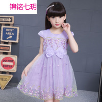 锦铭七玥2018夏季女童装 韩版新款连衣裙蝴蝶结儿童网纱绣花朵公主裙短袖