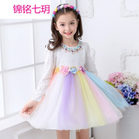 锦铭七玥女童礼服公主裙长袖童装2018春季女童装新款儿童连衣裙纯棉彩虹裙