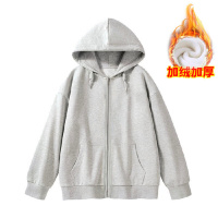 浅灰色连帽拉链卫衣女秋冬加绒加厚新款宽松外套长袖上衣