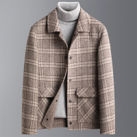 秋冬新款短款羊毛双面呢呢大衣男加厚格子双面呢羊毛大衣男装外套_633
