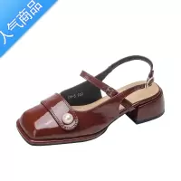 SUNTEK法式高跟包头凉鞋女款夏季配裙子粗跟方头透气单鞋百搭酒红色女鞋