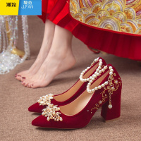 聚范尖头粗跟结婚鞋子2024年新款中式秀禾敬酒服可穿红色新娘鞋女孕妇