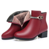 跨境妈妈棉鞋女冬新款粗跟中跟短靴加绒保暖短筒防滑中老年女靴子
