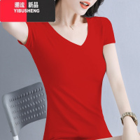 YIBUSHENG女装2023年新款黑色t恤女短袖V领季紧身纯色半袖修身上衣白