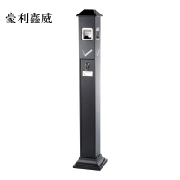 豪利鑫威不锈钢垃圾桶烟蒂柱灭烟桶带烟灰缸室外电梯口立式屋顶式黑色烤漆烟灰柱